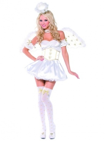 Krásný kostým Andílka obsahuje šaty, korzet, rukávky, svatozář a křídla.