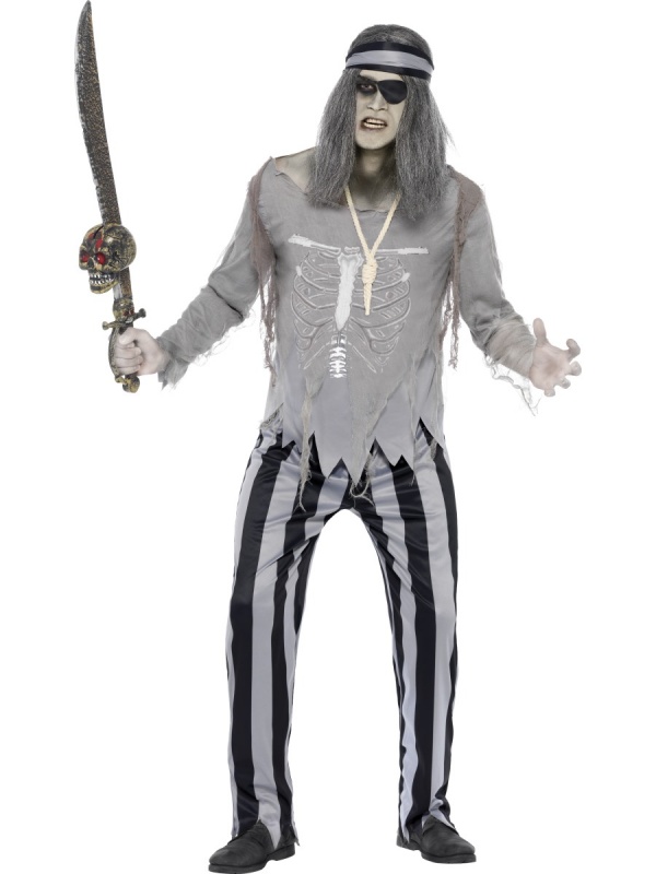 Děsivý pirátský kostým můžete použít na halloweenskou, hororovou, pirátskou, námořnickou nebo filmovou párty.